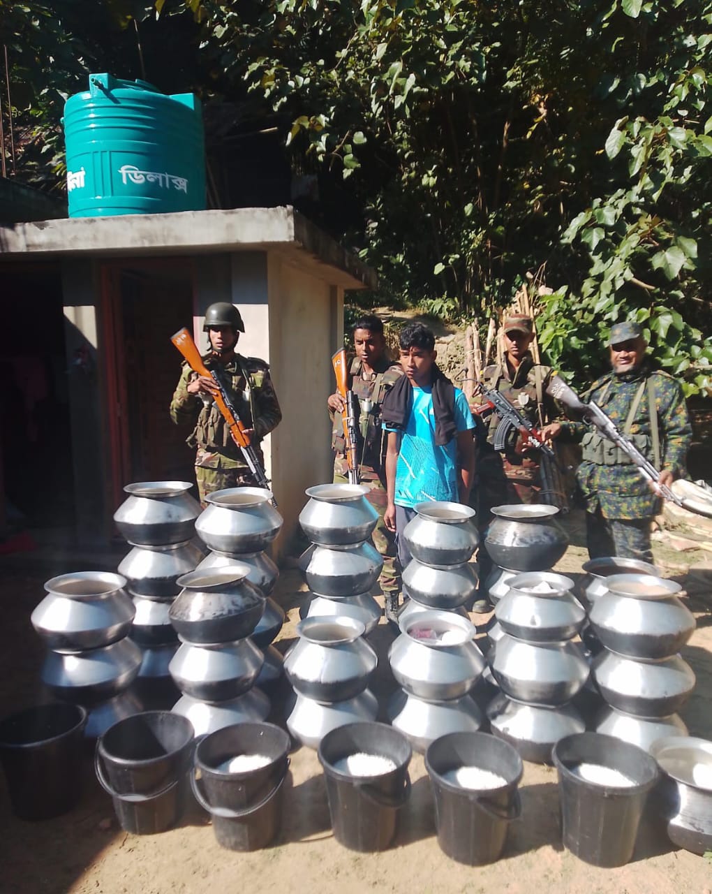 ​তল্লাশি চালিয়ে তার ঘর থেকে বিপুল পরিমাণ অবৈধ মদ তৈরির সরঞ্জাম এবং বিভিন্ন ঠিকাদারি প্রতিষ্ঠান ও ব্যবসায়ীদের নিকট থেকে চাঁদা সংগ্রহের কাজে ব্যবহৃত রশিদ বই জব্দ করে থানায় নিয়ে আসে পুলিশ।