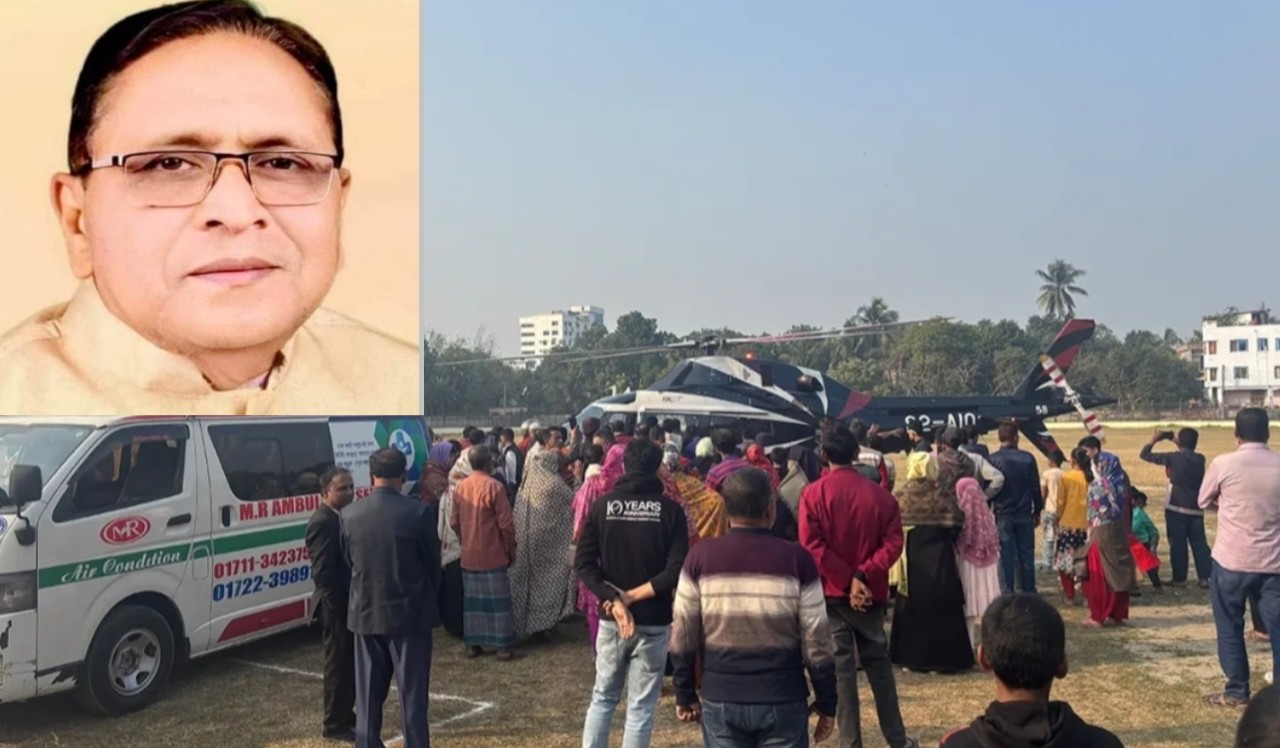 হেলিকপ্টারে ঢাকায় নেওয়া হয়েছে সাতক্ষীরা-২ আসনের এমপি প্রার্থীকে